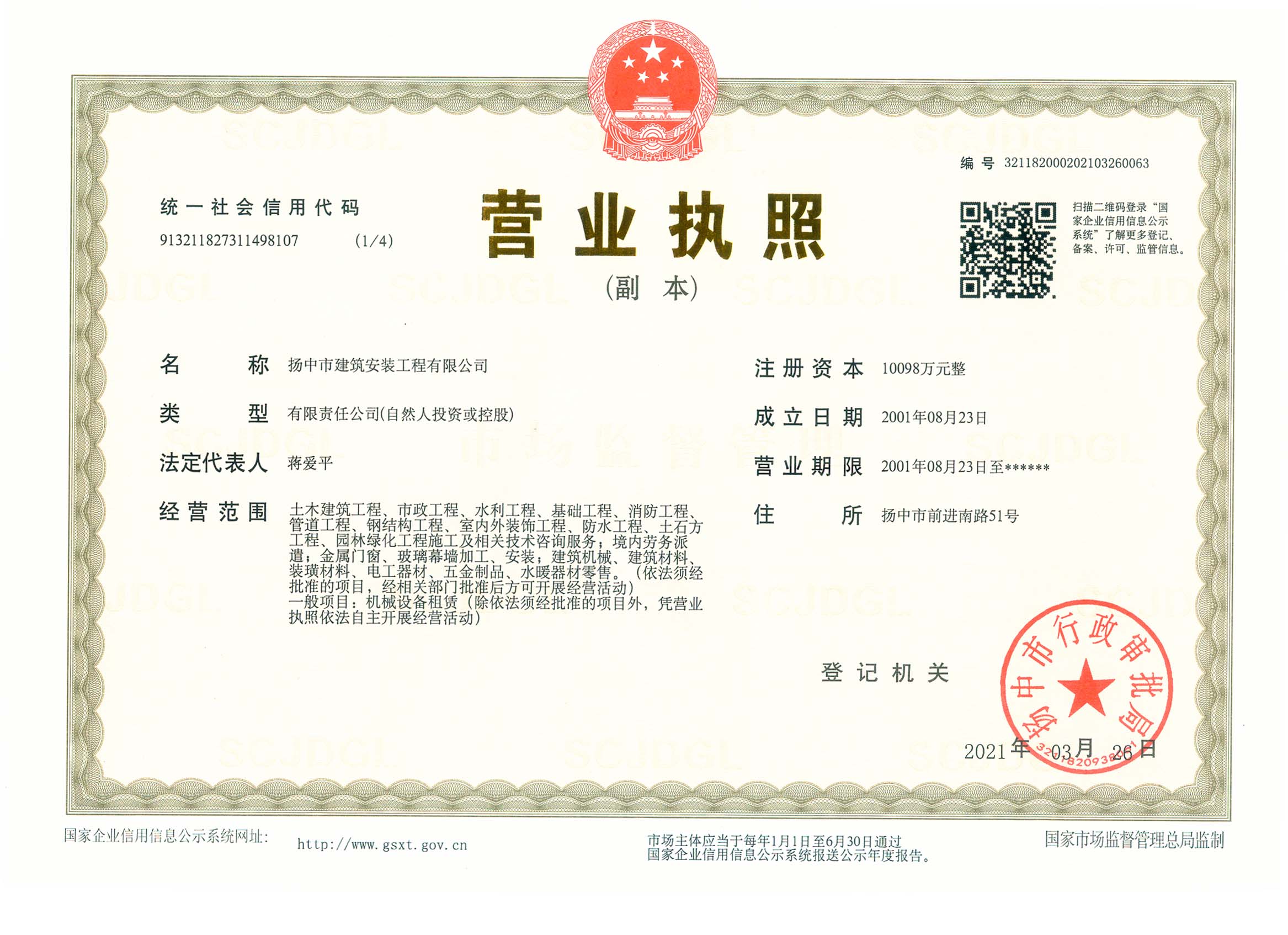 揚中市建筑安裝工程有限公司是房屋建筑工程施工總承包國家一級和市政公用工程施工總承包國家一級資質施工企業(yè),并具有地基基礎工程專業(yè)承包、起重設備安裝工程專業(yè)承包、建筑裝修裝飾工程專業(yè)承包、消防設施工程專業(yè)承包、建筑機電安裝工程專業(yè)承包、鋼結構工程專業(yè)承包等資質,在上海、南京、鎮(zhèn)江、蘇州、常州、沭陽、蕪湖、湖北襄陽等地設有分公司。60多年來,公司承建了一大批工業(yè)與民用建筑,為地方經(jīng)濟和...